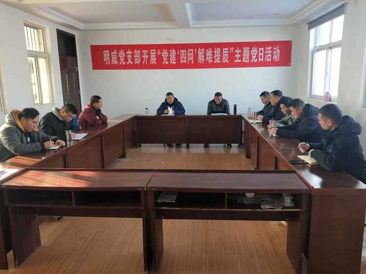 12月22日上午,明威黨支部在三樓活動室開展“黨建‘四問’解難提質(zhì)”主題黨日活動。明威黨支部書記葛高平主持座談,13名黨員及入黨積極份子參加?,F(xiàn)場,書記葛高平首先傳達了投資公司黨委《關于開展“黨建‘四問’解難提質(zhì)”主題黨日活動的通知》的文件精神。與會黨員和入黨積極份子認真學習文件精神,積極參與討論。