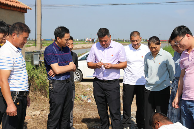 現(xiàn)場(chǎng)觀摩環(huán)節(jié),全體與會(huì)人員先后來(lái)到三洋支部黨員養(yǎng)殖示范崗、大新支部有機(jī)稻黨員示范崗,了解兩個(gè)“示范崗”的創(chuàng)建特色并聽(tīng)取了宋海龍、俞正猛在各自崗位上的養(yǎng)殖、種植經(jīng)驗(yàn)。
