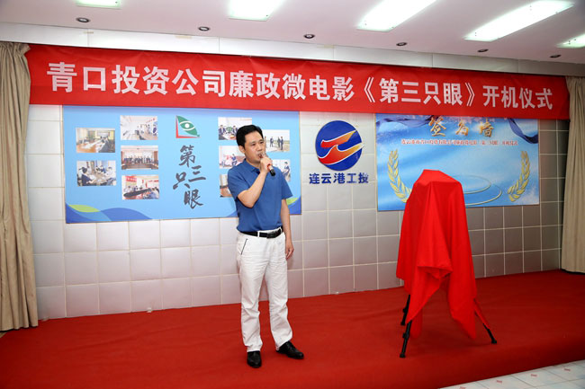 7 月 10 日上午,青口公司隆重舉行廉政微電影《第三只眼》開(kāi)機(jī)儀式。集團(tuán)公司紀(jì)委副書(shū)記王建松、 青口公司黨委書(shū)記胡傳法及全體班子成員、機(jī)關(guān)全體管理人員、劇組人員參加了本次儀式。